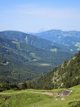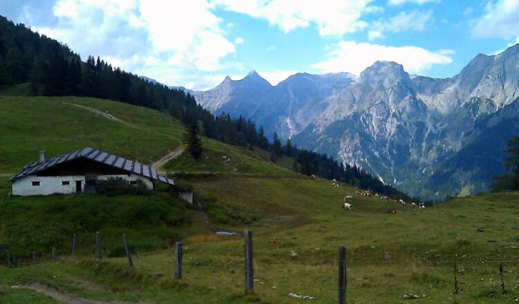 Von der Hofpürglhütte folgen wir über prächtige Almen dem Weg Richtung Theodor-Körner-Hütte. Über die Arzbergalm (1.347 m, in der Almsaison bewirtschaftet) steigen wir weiter über Almflächen und durch Wald zum Gehöft Neuhaus (912 m) ab. Weiter im Talboden gemütlich nach Lungötz (830 m).