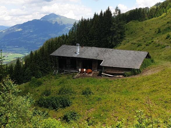Beim "Hanslerhof" von der Gemeindestraße Oberhausenweg abzweigend durch schöne Wälder zur Hansler- und weiter zur Burgstallalm.