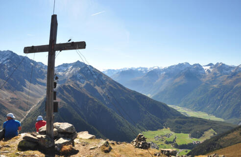 Die Wanderung beginnt beim Hotel Tauferberg und führt zum Ortsteil Sennhof - vom Bergmahderweg zweigen wir gleich links ab und es geht in recht steilen Serpentinen zum Bergle – übers Bergle und wieder steil zum 1. Gipfel den Narrenkogel. Vom Narrenkogel geht’s weiter über das flache Joch in Richtung Poschachkogel, dem 2. Gipfel. Vom Poschachkogel steigt man etwa 150m ab bevor es wieder bergauf zum wunderschön gelegenen Gruesee geht. Vom Gruesee kann man dann entweder entlang einem alten Schäferweg am Hang den Aufstieg zum Peistakogel wählen oder alternativ den direkten Aufstieg zum Gruejoch (2.747m - 3. Gipfel). Der Abstieg führt hinab ins Wannenkar zur Finstertaler Sennhütte und weiter ins Horlachtal zur Kleinhorlach Alm. Von der Kleinhorlachalm geht es dann wieder auf gutem Forstweg zurück nach Niederthai und zum Hotel Tauferberg.