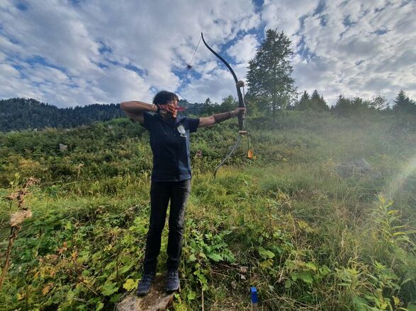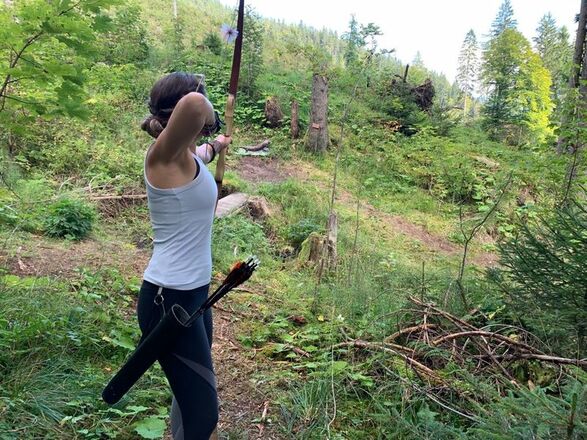Instinktives Bogenschießen im Berg-Parcours auf dem Kolbensattel in Oberammergau