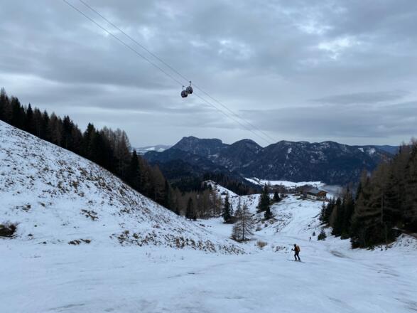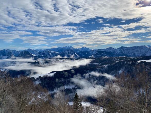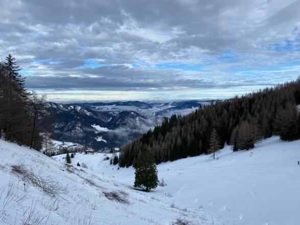 Einfache Skitour auf das Zwölferhorn. Im oberen Bereich freie Skiflächen, bei gutem Schnee durchaus lohnenswert!