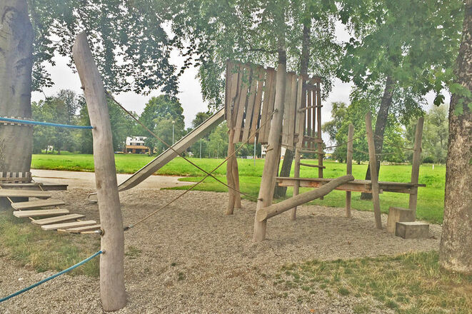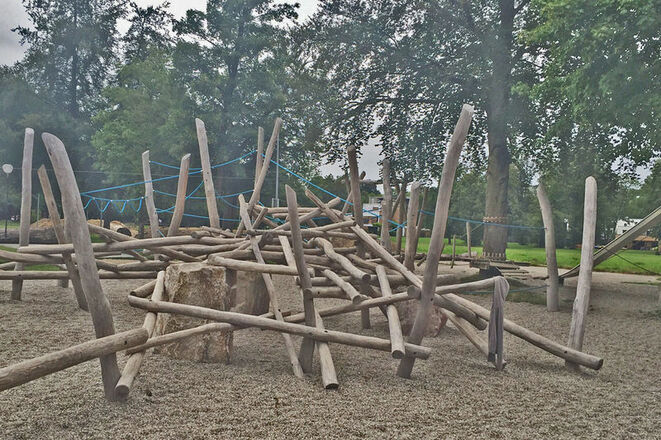 Die abwechslungsreichen Spielmöglichkeiten mit ganz viel Holz am Abenteuer-Naturspielplatz bieten Spaß für Kinder aller Altersgruppen.