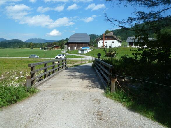Rechts hinter dem ehemaligen Gasthaus Aumühle zweigt der Weg ab und führt über einen gemütlichen Waldweg zum Tricklfall (3 Pkt.).