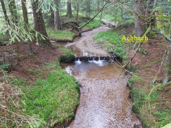 Die Wanderung beginnt wenige hundert Meter südöstlich der Ortschaft Frauschereck. Die Wanderroute führt auf Forststraßen hinab in das Achbachtal. Man kann hier die verschiedenen Waldformen vom Jungwald bis zum herrlichen Mischwald bewunderen. Nach ca. 1 1/2 km sieht man den Ursprung des kleinen Achbachbächleins das dan zunehmend größer wird. Rechts befindet sich der mit Jungwald bewaldete Bergrücken des Saustallberges. Kurz vor der Achbachklause münden links und rechts weiter kleine Bäche in den Achbach. Trotz der verschiedenen Einmündung von Bächen wäre mit diesem kleinen Wasservolumen des Achbaches ein Schwemmen von Scheitholz bis zum ca. 70 km weit entfernten Inn nicht möglich. Es wurde daher von ca. 1765 - 1897 also ca. 130 Jahre lang, jeweils bei Schneeschmelze im Frühjahr sowie bei Starkregen hier im Bereich der Achbachklause das Wasser zu einem See aufgestaut und dann mit einem Wasserschwall das Scheitholz Richtung Schneegattern (damals noch Weißenbach genannt) und weiter bis zum Inn geschwemmt. Der Rückweg führt einige hundert Meter oberhalb der Klaus auf den linken Waldrücken des Talkessels zurück nach Frauerscheck und weiter zum Ausgangspunkt der Wanderung.
