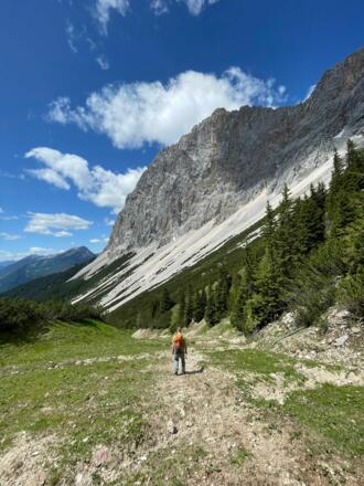 Mit der Ehrwalder Almbahn bis zur Bergstation. Dann weiter Richtung Issentalkopf-Sessellift.