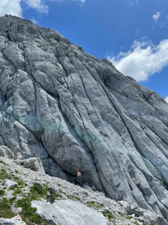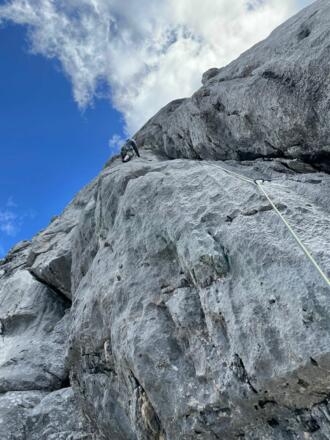 Toller, alpiner, Klettergarten in recht großer Höhe mit vielen Einseillängen und Mehrseillängen.