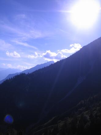 Hinauf geht es im Wald Richtung Thaurer Alm, immer wieder öffnet sich der Blick in das Inntal und hinüber zum Patscherkofel und Glungezer. Der letzte Anstieg kurz vor der Thaurer Alm wird noch einmal richtig anstrengend, aber auch der ist zu meistern. Der Blick hier oben in der Nähe der aufragenden Lattenspitze ist gewaltig.