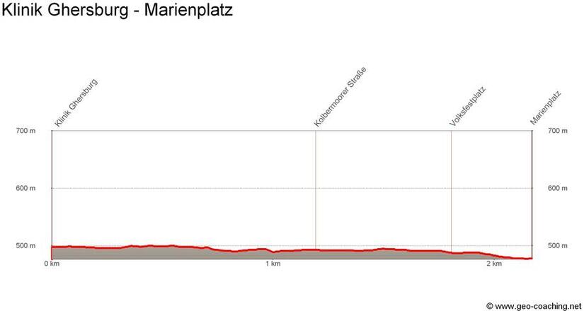 Klinik Ghersburg - Ghersburgstraße - Fraunhoferstraße - Kolbermoorer Straße überqueren - Fußweg - Schwarzfischerallee - Am Klafferer - Marienplatz