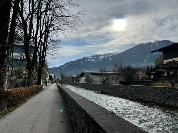 Nach einem kurzen Stopp führt die Wanderung weiter auf dem Römerweg und gleichzeitig in Richtung Stadtrand. Blickt man von dort zurück zum Ortszentrum so sind noch heute einige Vertreter der im letzten Jahrhundert entstandenen Villen- bzw. Hotelarchitektur erkennbar. Die Bauweise ist durch ihr Natursteinmauerwerk, mittelalterliche Holzriegelkonstruktionen, geräumige Glasveranden und Balkone geprägt und wird heute durch moderne Hotelbauten ergänzt, die sich wie in vielen anderen alpinen Wintersport-Destinationen immer mehr zum Ortsrand ausweiten.