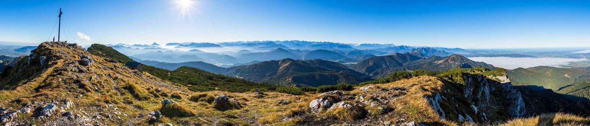 Wer gute Kondition, Schwindelfreiheit und Trittsicherheit mitbringt und auch nichts gegen Forstwege hat, auf den wartet eine abwechslungsreiche Rundtour mit Aussicht auf den Gipfel der Benediktenwand. Vom Parkplatz bei Petern geht es, immer die Sonne im Rücken dem Gipfel entgegen. Auf der Abstiegsvariante warten ein einsamer Steig und eine gute Aussicht auf den eben bestiegenen Gipfel auf uns. Einzig der steile und etwas eintönige Forstweg durch dichten Buchenwald, vom Langenecksattel zurück, trübt den Eindruck etwas.
