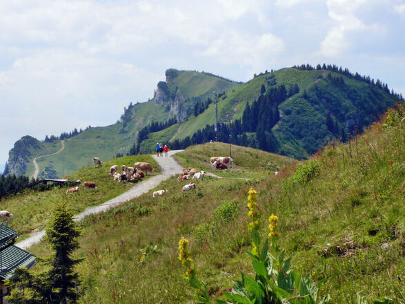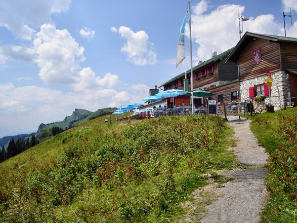 Nichts für heiße Tage ist der zügige Aufstieg zu den sonnseitigen Almwiesen und -hütten im Skigebiet des Brauneck - es sei denn, man kehrt den Faulpelz heraus und fährt wie die meisten Touristen mit der Gondel hoch. Belohnt wird man so oder so mit einer prachtvollen Sicht auf Karwendel und Wetterstein. Obwohl die Runde überwiegend teils beschilderten Fahrwegen folgt, sind Straßenschuhe wegen einiger glitschiger Passagen nicht empfehlenswert. Bis zur Kotalm folgt der Aufstieg übrigens einer belieten Trainingsstrecke für Hardcore-Mountainbiker. Von der Draxlalm geht es links (westwärts) auf einem Karrenweg flach über Wiesen aufwärts, anschließend leitet uns ein Fahrweg rechts durch Wald erst an einem Bach, dann in Kehren relativ steil hinauf zu den Wiesen im Liftgebiet. Oberhalb der Kotalm queren wir nach links und folgen einem Wanderweg hinauf zu einem Sattel (zum Schluss matschig). Dahinter nordwestwärts im Wald queren, nun nordwärts etwas glitschig hinauf zu einer Piste mit Wiese, auf dieser kurz links, dann rechts zu einer Schulter unterhalb der Berstation der Brauneckbahn, die wir über eine Eisentreppe erreichen. Von hier erst einige Meter links auf dem Panoramaweg, dann scharf rechts zum bewirtschafteten Brauneck-Gipfelhaus (1540 m) und hinauf zum Gipfel des Brauneck (1555 m). Zunächst geht es westwärts auf dem Kamm (Höhenweg) Richtung Schrödelstein, vor diesem links hinab zum Panoramaweg (Fahrweg) und wandern auf diesem südwestwärts hinab zur bewirtschafteten Quengeralm. Nun in westlicher Richtung erreichen wir über die Schulter an der Latschenkopfhütte die Stiealm mit der bewirtschafteten Idealhanghütte (1520 m). Abstieg: Wir gehen zurück zur Quengeralm, nehmen rechts den Fahrweg und wandern an der Bayernhütte (vorübergehend geschlossen) und der Finstermünzalm (nur im Winter bewirtet) vorbei in Südostrichtung abwärts zum Wald. Weiter geht es zur Lichtung der Filzalm und ostwärts hinab zu flachen Wiesen. Beim Schild "Brauneck-Bahn" biegen wir links auf einen Wiesenpfad ab und erreichen nach Passieren einiger Zaundurchlässe den Parkplatz.
