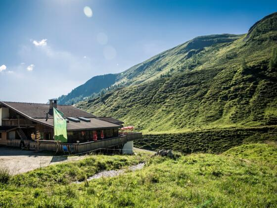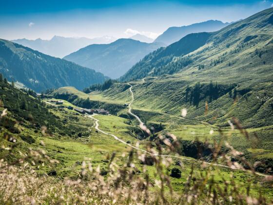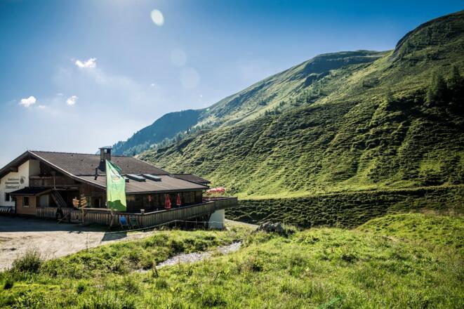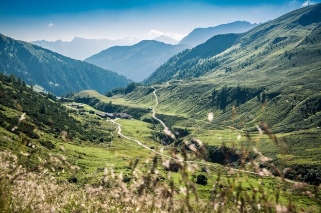 Diese überwältigende Route führt von Juns bzw. Tux-Lanersbach durch das wildromantische Almhochtal, inmitten von Viehweiden und Alpenrosenhängen zur Bergkäserei Stoankasern.