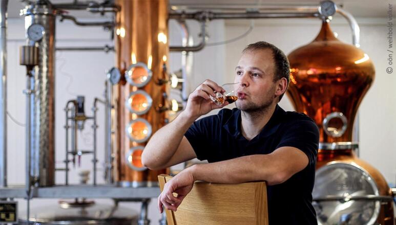 • der Dinkelbrand: Feine Traubennote. Elegant. Sanfte Nuss- und Nougatnuancen. Harmonisch und rund.