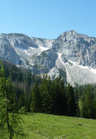 Die Blumaueralm liegt idyllisch unter den felsigen Nordabstürzen des Sengsengebirges.
