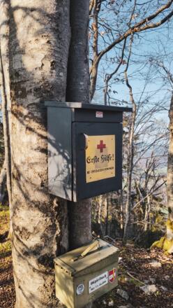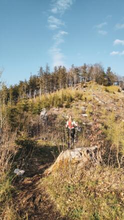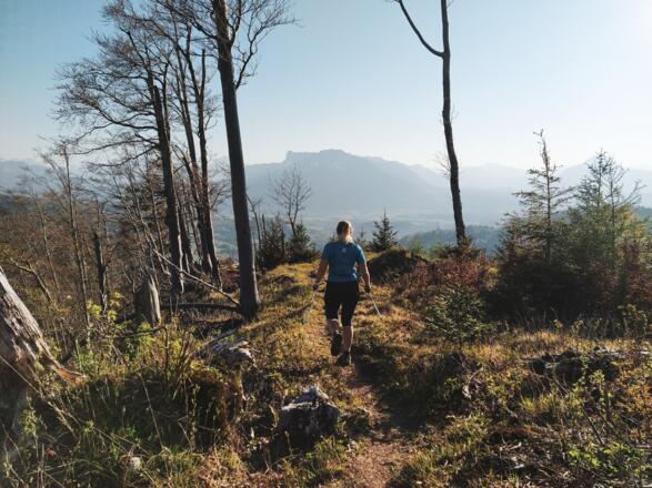 festes Schuhwerk, SpeedHiking/Trailrunning-Schuhe, Stirnlampe bei Sonnenuntergangswanderung