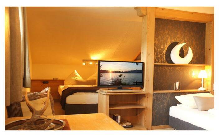 ** Qualifizierter Wandergastgeber ** Unser komfortables *** Boutique Hotel liegt direkt am Ufer des Weissensees. Die familiäre Atmosphäre und liebevoll gestalteten Räumlichkeiten, die geschmackvollen Zimmer und Appartements, Sauna und Sanarium laden Sie zur Entspannung und Erholung ein. Herzlich Willkommen!Sonstiges- Storno: 30 Tage vor Anreise: keine Kosten. Spätere Stornierung: 80 % der Kosten Ihrer Reservierung - Bei früherer Abreise: 80 % der Kosten Ihrer Reservierung- Anreise: 15:00 -19:00 Uhr- Abreise: 7:00 - 10:30 Uhr- Kurtaxe unter 5 Jahren frei, 6-15 1,10€ ab 16 Jahren 2,20€ pro Person/Nacht - Haustiere erlaubt, Ab 3 Hunden auf Anfrage, Preis 10,00 im Zimmer – 15,00 im Premiumzimmer- Inklusivleistungen: Enreinigung, Fitnessraum, Ihr Morgen-Kaffee bzw. Tee auf dem Zimmer Kaffee-Plausch am Nachmittag: Nachmittags kostenfreier Kaffee und verschiedene Teesorten von Sonnentor mit hausgemachtem Gebäck in unserem „Seestüberl“ · Private Nutzung des Sauna- und Sanarium-Bereichs · Auswahl an Gesundheitskissen je nach Schlaftyp · In unseren Premiumzimmern steht Ihnen zudem ein Internetradio zur Verfügung · GRANDER® - Wasser · WLAN. Ihrem Schlaf zuliebe mit einer Pause von 22:30 Uhr - 06:00 Uhr - Parkplatz