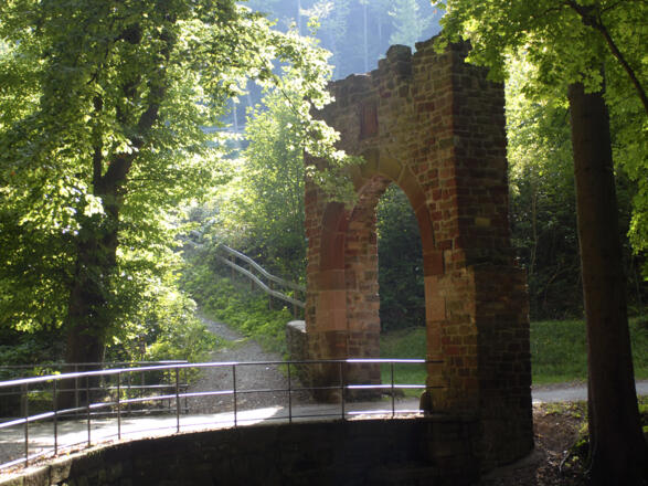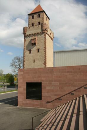 Vom Startpunkt Parkplatz am „Schwertfegertor“ lohnt der kurze Hin- und Rückweg zu dem vom „Mainzer Tor“ markierten Stadteingang, denn dort zeigt zum einen die alte, dreibogige Mudbrücke mittelalterliche Brückenbaukunst und mit der Laurentiuskapelle und dem Friedhof warten kulturhistorische und steinmetzkünstlerische Kostbarkeiten. Eine zeitgemäße Entsprechung bietet die klare Sandsteinfassade von Jugendzentrum und Museumsdepot mit dem breiten Treppenaufgang.