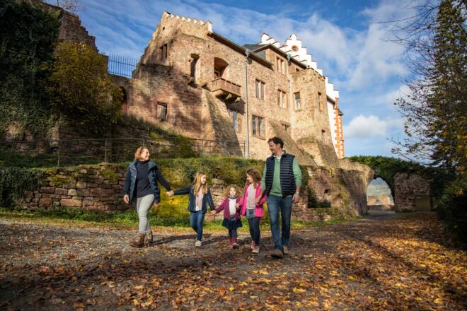 Schon ragt die „Mildenburg“ auf, die zum Besuch von Bergfried, Museum Burg Miltenberg und ihrem Innenhof mit Café einlädt. Hoch über den Dächern der Stadt erwartet uns in alten Burgmauern ein spannungsreicher Dialog zwischen Ikonen und moderner Kunst sowie ein grandioses Panorama über das Mainknie.