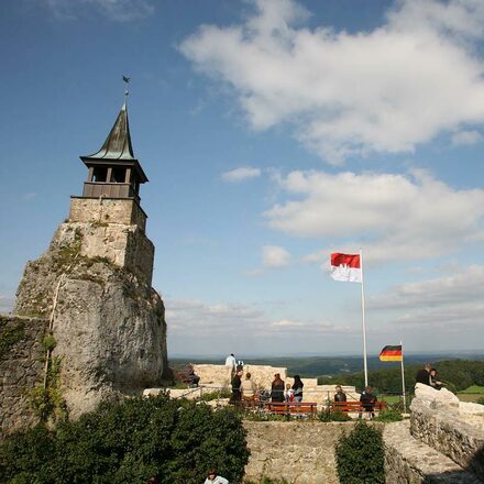Vom Wahrzeichen der Frankenalb (gleichzeitig höchster Punkt mit 634 m NN) hat man einen weiten Rundblick, der bei klarem Wetter bis zum Fichtelgebirge reicht. Die Burg Hohenstein war von Anfang an eine Verwaltungsburg und Sitz eines Vogtes, Pflegers oder Amtmannes.