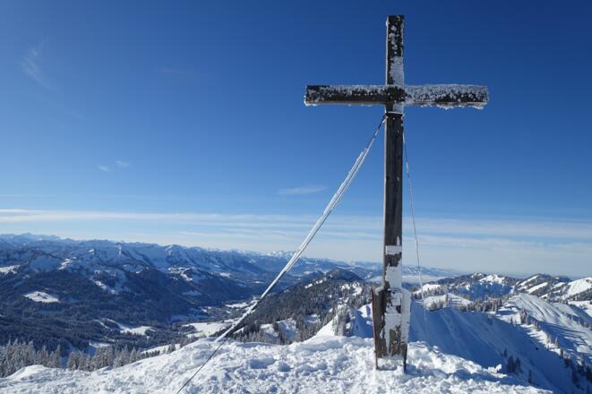 Kurz nach der Alpe, zweigt der Weg nach links ab, in Richtung der Oberen Balderschwang Alpe, nach einigen Hundertmetern Richtung Norden, geht es nach rechts. Durch etwas steileres Gelände steigen wir dem Gipfel entgegen.