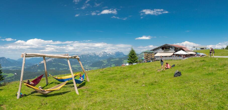 Mit der Gondelbahn in Niederau schwebt man in kurzer Zeit auf das Markbachjoch. Dort auf 1496 m hat man eine herrliche Fernsicht bis hin zum Großglockner.