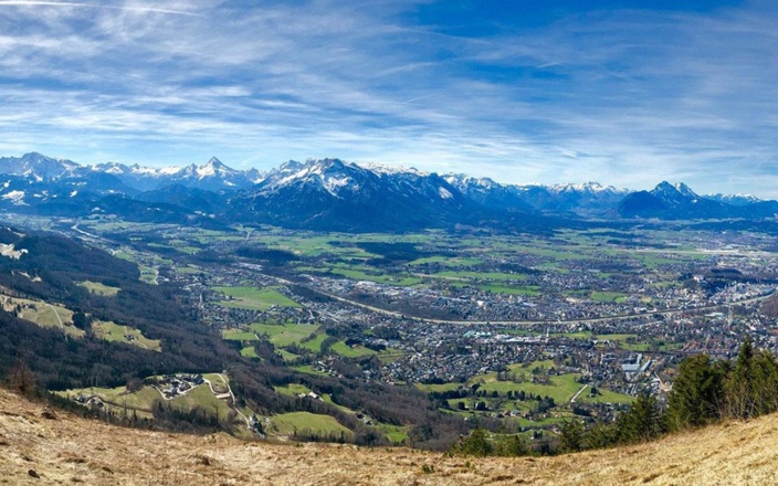 Haben Sie gerade Lust auf eine kurze Wanderung im Grünen? Dann ist die sogenannte Zistelrunde am Gaisberg die perfekte Wahl. Start- und Zielpunkt ist die 1.001 Meter hoch gelegene Gastwirtschaft Zistelalm, die „Sonnenterrasse der Salzburger“, mit ihrer fabelhaften Aussicht auf den sagenumwobenen Untersberg. Bleibt die Frage: Möchten Sie sich erst stärken oder nehmen Sie die rund 2,5 Kilometer lange Strecke gleich in Angriff, bevor Sie sich an einem der gemütlichen Holztische niederlassen? Wem der Sinn nach Entschleunigung steht, kann verweilen und das einmalige Bergpanorama ringsum genießen. Sitzbänke am Wegesrand laden zu einer Rast mit Blick auf Gipfeln, wie den Watzmann, den Hohen Göll, den Hochthron und den Hochstaufen ein. Alle jene, die über ausreichend Kondition verfügen, können eine Abzweigung zur Gaisbergspitze nutzen und kommen nach 150 Höhenmeter und circa einer halben Stunde Gehzeit auch noch zum Gipfelerlebnis. Der größte Teil des Spaziergangs führt über einen breiten Schotterweg, der auch für Winterwanderungen und Kinderwägen bestens geeignet ist. Zum Abschluss oder Beginn des Rundweges gibt es für Kinder einen tollen Holzspielplatz, ein Austoben ist garantiert!