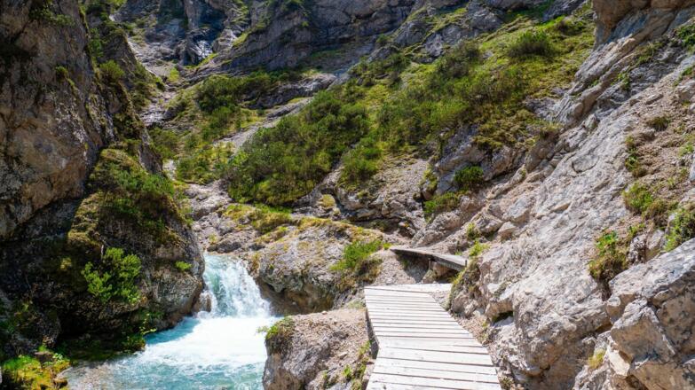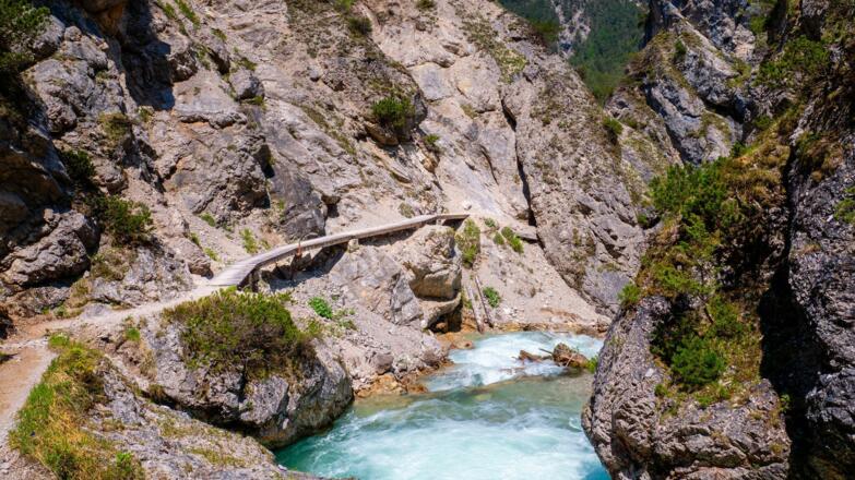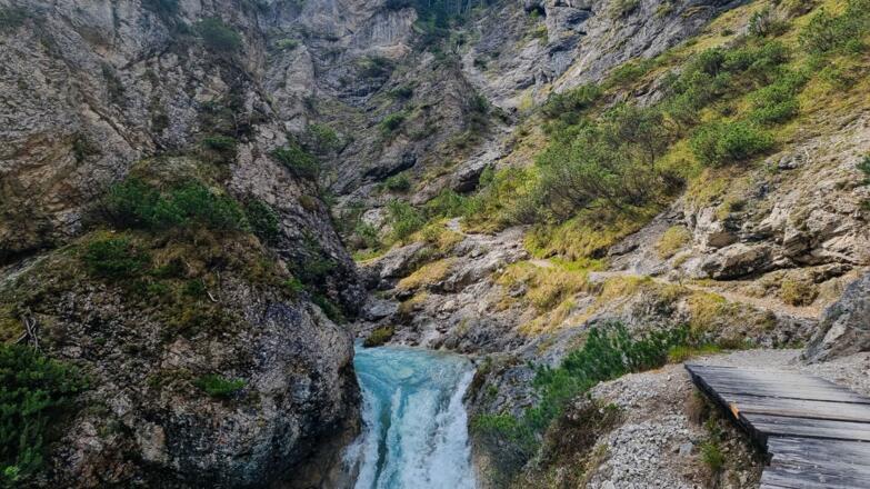 Vom Naturpark-Infozentrum Scharnitz folgen Sie der Hinterautalstraße bis zum Haus Taxi Mair. Dort biegen Sie rechts ab und folgen der Straße bis zu einem leicht ansteigenden Forstweg. Nach ca. 15 Minuten erreichen Sie die Abzweigung zum Isarsteig. Am Ende des Isarsteiges gelangen Sie auf den Nederweg, vorbei an der Scharnitzer Alm bis Sie zum Eingang der Gleirschklamm kommen. Durch die wildromantische Klamm führt ein schmaler Steig, welcher nur für trittsichere und geübte Wanderer geeignet ist. Der Pfad führt Sie durch die Klamm. Am Ende des Steiges kommt man auf eine Forststraße. Hier nach links weiter bis zur Gleirschtal Forststraße. Von dort taleinwärts nach rechts zur Möslalm. Der Rückweg erfolgt über die Forststraße oder auf demselben Weg durch die Klamm zum Ausgangspunkt.