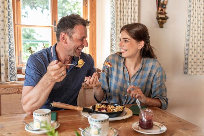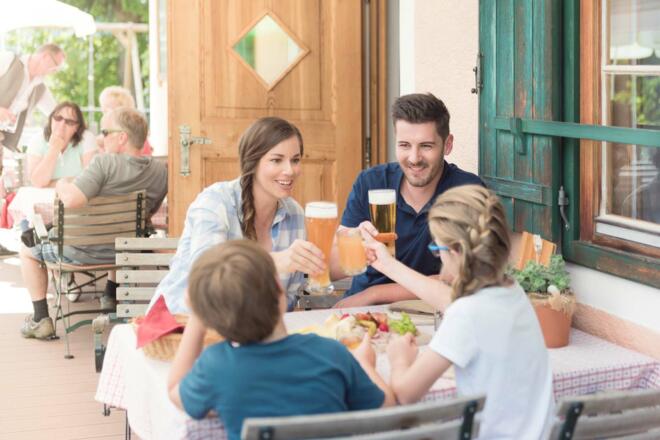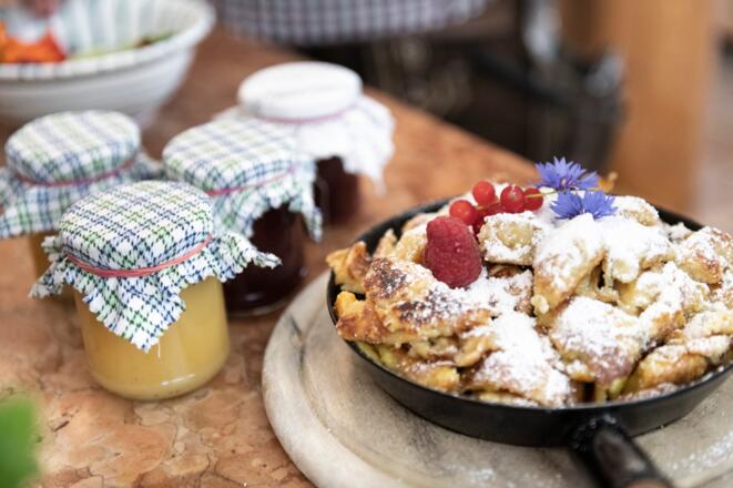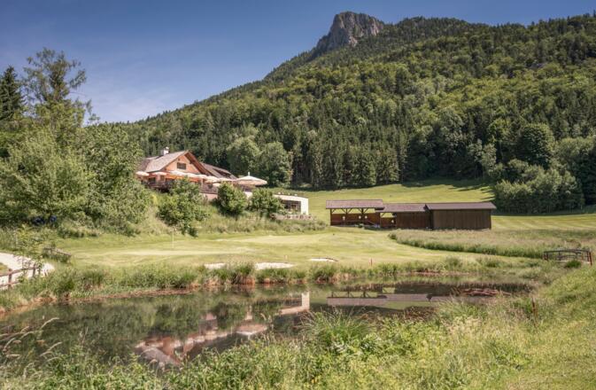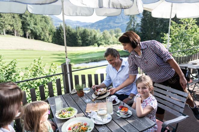 Eine Aussicht, wie sie schöner wohl kaum sein könnte! Von der herrlichen Sonnenterrasse der Ebner’s Waldhof Alm erstreckt sich ein malerischer Fernblick über die gepflegte, hoteleigene 9 Loch Golfplatz Anlage und die umliegenden Berge. Dieses romantische Ausflugsziel etwas oberhalb des Ebner's Waldhof, das gemächlich in 15 Gehminuten von der Seepromenade in Fuschl erreicht werden kann, entpuppt sich auch innen als wahres Schmuckkästchen. Die liebevoll gestalteten, holzgetäfelten Stuben strahlt auf Anhieb heimelige Geborgenheit aus. Zu den lokalen und herzhaften Schmankerln serviert Ihnen das Almteam ein kühles Bier vom Fass und andere Erfrischungen. Naschkatzen werden wiederum von den frischen hausgemachten Mehlspeisen begeistert sein. Auf der Waldhof Alm treffen sich Wanderer, Spaziergänger, Biker und Golfer zum gemütlichen Beisammensein. Kinder haben die Möglichkeit sich am Spielplatz auszutoben.