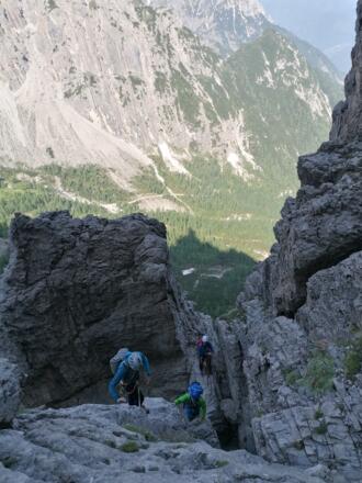Äußerst lohnende und abwechslungsreiche Alpinkletterei im bombenfesten Kalk der Lienzer Dolomiten. Die Kombination dieser beiden Routen beschert erheiternde und bombastische Kletterei vom Feinsten - und das im III. UIAA-Grad!