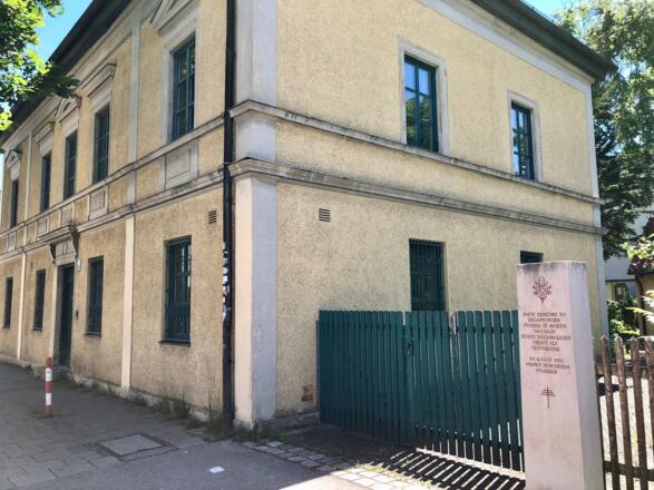 1879 wurde das baufällige Holzhäuschen an die Gemeinde Moosach verkauft. Diese entschied 1882 anstelle eines Tagwerker Hauses, als welches es davor genutzt wurde, ein Armenhaus zu bauen. Der Gemeindeausschuss beschloss am 13.11.1904 das Haus zu renovieren und im Erdgeschoss eine Gendarmerie Station, also eine Station für staatliche Wachkörper, unterzubringen. Die erste Etage sollte als Wohnung für den zukünftigen Seelsorger der Kirche dienen. Am 25.01.1909 gab die Gemeinde das Haus dann unentgeltlich an die Katholische Pfarrpfründestiftung St. Martin Moosach ab. Im August 1951 wohnte der Priester Dr. Joseph Ratzinger in dem Haus. Er hatte als Aushilfe seine Seelsorgliche Laufbahn in der Pfarrei nebenan begonnen. Von 2005-2013 war er als Papst Benedikt XVI tätig.