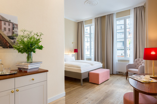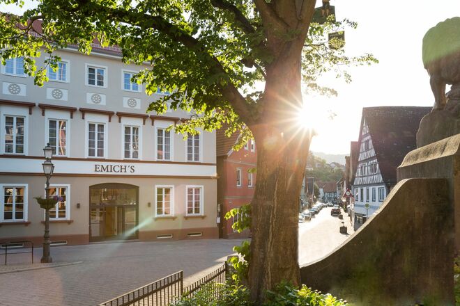 Das neue EMICH´S Hotel heißt seine Gäste seit Mai 2019 inmitten der historischen Altstadt Amorbachs willkommen. In zentraler und ruhiger Lage mit Blick auf die Abteikirche oder hinein in den Odenwald versteht sich das 3*S-Haus als Wohlfühlort umgeben von viel Kultur und Natur. 50 Zimmer und Suiten verteilen sich auf das historische Haupthaus und ein Gartenhaus, das über den charmanten Innenhof in wenigen Schritten zu erreichen ist. Gekonnt verbinden sich barocke Wohnelemente mit modernem Design. So auch in den öffentlichen Bereichen. Im Haupthaus befindet sich das EssZimmer, ein Rauchsalon sowie die EMICH´S Bar & Vinothek, die mit kleinen Leckereien und edlen Weinen zum Verweilen einlädt und auch für externe Gäste zur Verfügung steht. Wer nach einem exklusiven Wohnerlebnis sucht, findet dies im neu renovierten Fischerhaus inmitten des, nur wenige Minuten entfernten, Fürstlichen Seegartens.