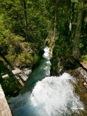 Eines ist jedenfalls sicher: Entlang des eisig kalten Gebirgsflusses bleiben die Temperaturen im angenehmen Bereich. Nach dem ersten Teil, geht's auch langsam bergauf, immer dem Wasserrauschen nach führt der Weg zu insgesamt zwei beeindruckenden Wasserfällen: dem Schwarzbachfall und dem Winnerfall (dieser ist allerdings nur periodisch während der Schneeschmelze oder nach Regen vorhanden also etwas ganz Besonderes).