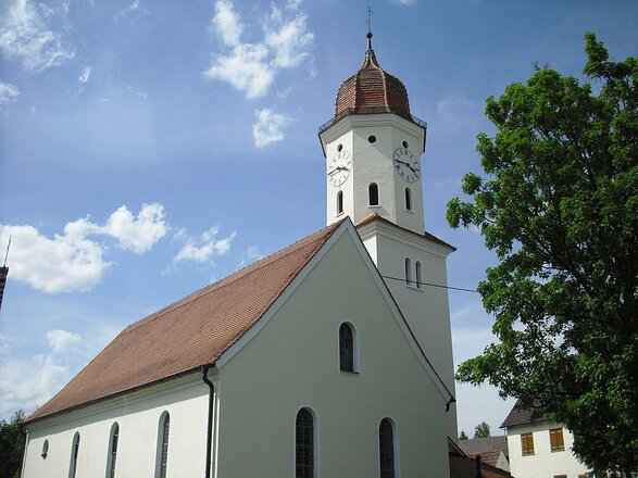 Der Turm mit Zwiebelhaube stammt aus der zweiten Hälfte des 17. Jahrhunderts, während das Kirchenschiff 1740/45 entstanden ist. Deckenbilder und Apostelbilder an der Emporenbrüstung Mitte 18. Jahrhundert,