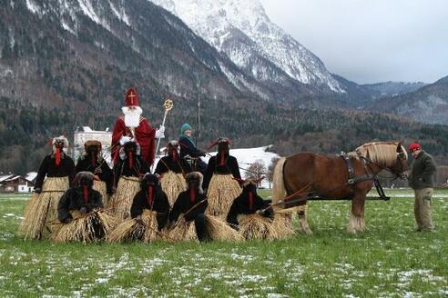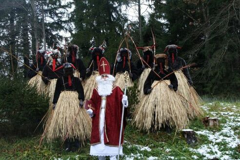 Am 5. Dezember kommt der Nikolaus in einer Kutsche mit seinen Krampusse zum Petersplatz.
