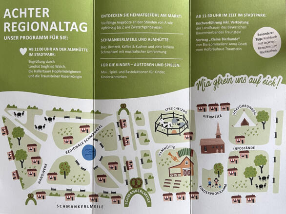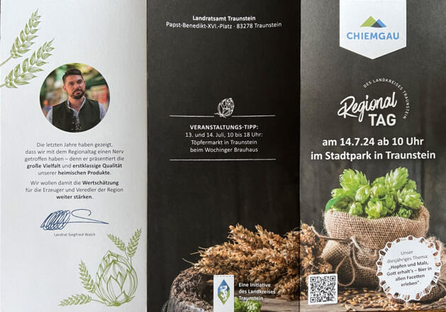 Der Regionaltag wird um 11 Uhr durch Landrat Siegfried Walch, die Halltertauer Hopfenköniginnen und die Traunsteiner Rosenkönigin an der Almhütte im Stadtpark eröffnet. Mit dem Regionaltag, der mittlerweile eine feste Größe im Veranstaltungskalender geworden ist, möchte Landrat Siegfried Walch die Wertigkeit von regionalen Lebensmitteln bei Einheimischen und Besuchern noch mehr ins Bewusstsein rücken: „Die letzten Jahre haben gezeigt, dass wir mit dem Regionaltag einen Nerv getroffen haben – denn er präsentiert die große Vielfalt und erstklassige Qualität unserer heimischen Produkte. Wir wollen damit die Wertschätzung für die Erzeuger und Veredler der Region weiter stärken“, so Landrat Walch.