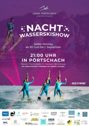 Jeden Montag* (30. Juni bis 1. September 2025) findet um 21 Uhr die Nacht-Wasserskishow in Pörtschach vor Werzers Das Bootshaus statt.