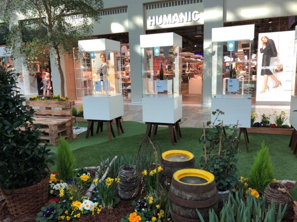 In der gesamten WEBERZEILE sind blühende Grünflächen verteilt auf denen unserer Markenshops die neuesten Trends des Frühjahrs 2023 präsentieren.