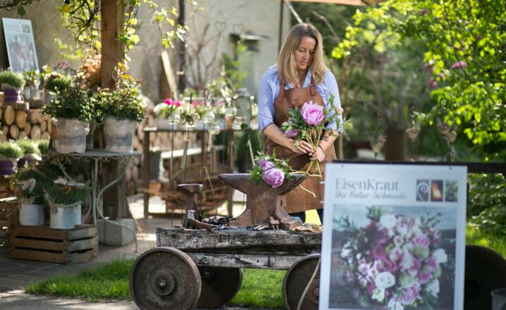 Offene Werkraumtür und Hofladen - wenn das Wetter passt wird bei offenem Feuer geschmiedet. ... wo sich Gefühle verfestigen. Feuer, Eisen, Blumen und Pflanzen sind die wesentlichen Elemente der Biobäuerin Monika Kaiser, die in ihren kunstfertigen Händen wahrlich „verschmelzen“. Bestaunen Sie die handgeschmiedeten Unikate in ihrer Natur Schmiede in Seeham. Mehr auf www.eisenkraut.at