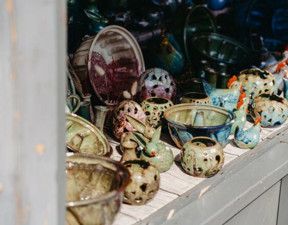 KunsthandwerkerInnen bieten ihre selbst entworfenen und in den eigenen Werkstätten gefertigten Produkten aus den verschiedensten Materialien an.