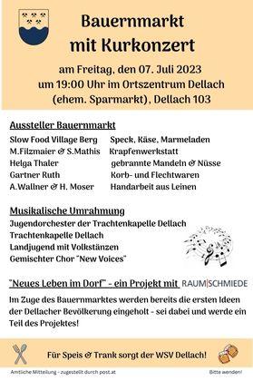 Bauernmarkt mit Beginn ab 19:00 Uhr und anschließendem Konzert der Trachtenkapelle um 20:00 Uhr