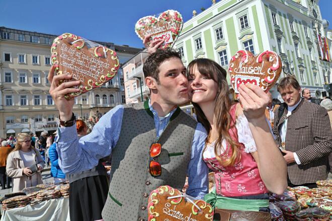 Verkauf von Liebstattherzen bei den „Standln” in der Stadt.