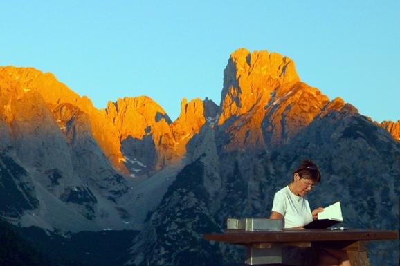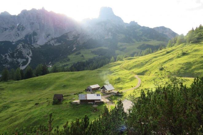 Wenn alle anderen noch schlafen, sind wir bereits unterwegs: Auf alten Almpfaden geht es Richtung Loseggalmen. Gerade rechtzeitig angekommen, denn nun spitzelt die Sonne über die schroffen Gipfel - ein prächtiges Schauspiel. Die Natur erwacht, wir lassen uns das Frühstück auf der Langfeldhütte schmecken - bevor es weiter auf den Aussichtspunkt Mahdriedl geht.
