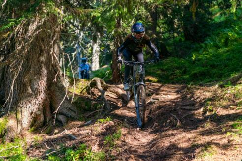 Ihr benötigt: Ein all Mountain oder Freeride/Enduro/DH-Bike, MTB Fully oder E-MTB, Helm, Bein- und Armprotektoren, Rückenprotektor, Handschuhe lang.