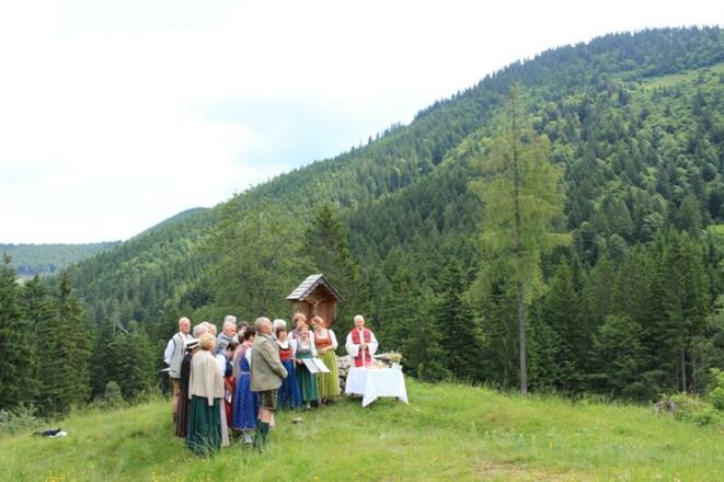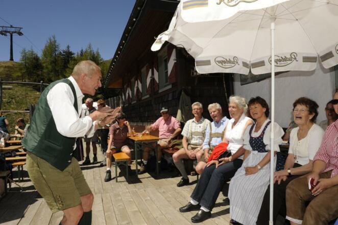 Um 11.30 Uhr wird die Bergmesse vor der Alm zelebriert, anschließend findet das traditionelle "Sänger- und Musikantentreffen" im Rahmen des Volksliedtages statt. Die Veranstaltung findet nur bei Schönwetter statt!