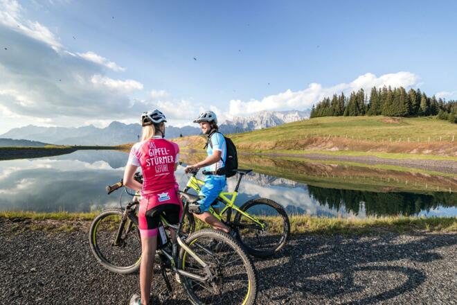 Anschließend probieren wir uns (optional) auf einem Flowtrail - hier ist es dem Guide vorbehalten, Teilnehmer vom Befahren des Trails auszuschließen - oder machen eine kleine Tour rund um Maria Alm
