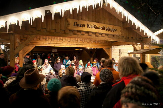 Etwas länger sind die Intervalle beim Krippenspiel. Die vermutlich größte Holzkrippe Österreichs erwacht alle 30 Minuten zum Leben.