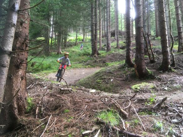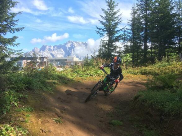 Mit Chris und seinen Bikeguides üben wir das Trailfahren bei der Skillarea/Pumptrack Bürglalm Bergstation.