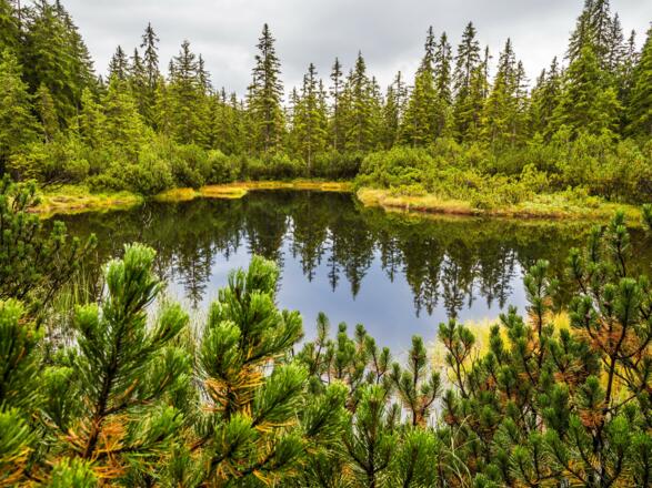Unsere Wanderung führt uns von den Hofalmen über wunderschöne Waldwege durch den märchenhaften Wurmeggwald. Dabei kommen wir auch an der sagenumwobenen Schwarzen Lacke vorbei. (blau, 350 hm)