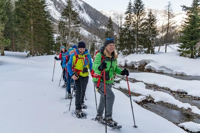 Ausgehend vom Parkplatz der Ankogelbahn erwandern Sie mit Ihrem/Ihrer Nationalpark Ranger:in das Mallnitzer Seebachtal. Je nach Schneelage findet diese Tour mit Schneeschuhen statt. Bei wenig Schnee stehen Ihnen Grödel für die sichere Begehung zur Verfügung. Mit etwas Glück beobachten Sie, wie Bartgeier über das Seebachtal kreisen, wie der frei fließende Seebach im Winterkleid aussieht und erfahren Spannendes über die Anpassungsstrategien der Wildtiere im Winter.