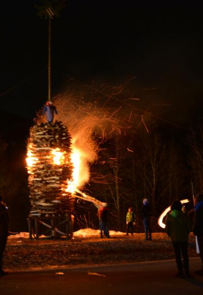 Am Funkensonntag ziehen die Chrochner (Schulkinder) und die Fachilischwinger (Jungen, die den Funken aufrichten) von Haus zu Haus, tragen ihr Sprüchlein vor und wünschen Dir Glück. Am Abend wird mit dem Abbrennen des Funkens der Winter symbolisch ausgetrieben. Den Termin kannst Du Dir leicht merken: Funkensonntag ist immer am ersten Fastensonntag. Das Funkenfeuer – kurz Funken – ist ein alter Feuerbrauch, der heute noch im schwäbisch-alemannischen Raum verbreitet ist. Rund um die Funkentanne wird ein Holzturm errichtet, der schließlich angezündet wird. Seit 2010 zählt das Vorarlberger Funkenbrauchtum zum immateriellen Kulturerbe der UNESCO in Österreich.